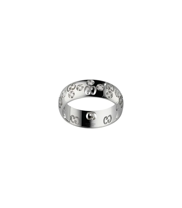 Icon 18kt White Gold Ring - Metallic. 18kt white gold 18kt white gold diamond ring from GUCCI featuring polished finish pavé-set diamonds and signature Interlocking G logo. Link To Love.