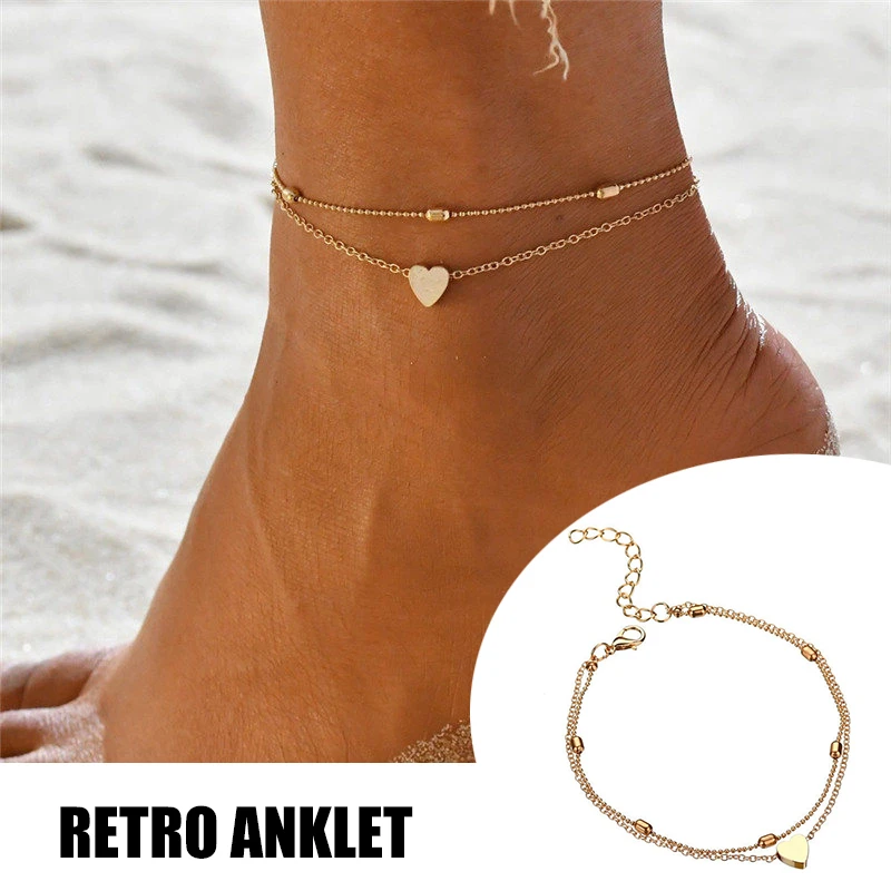Layered Anklet Bracelet Dual Layer Simple Love Heart Ankle Chain Elegant Wrist Foot Jewelry Gift For Girls Women Lxh Anklets Aliexpress