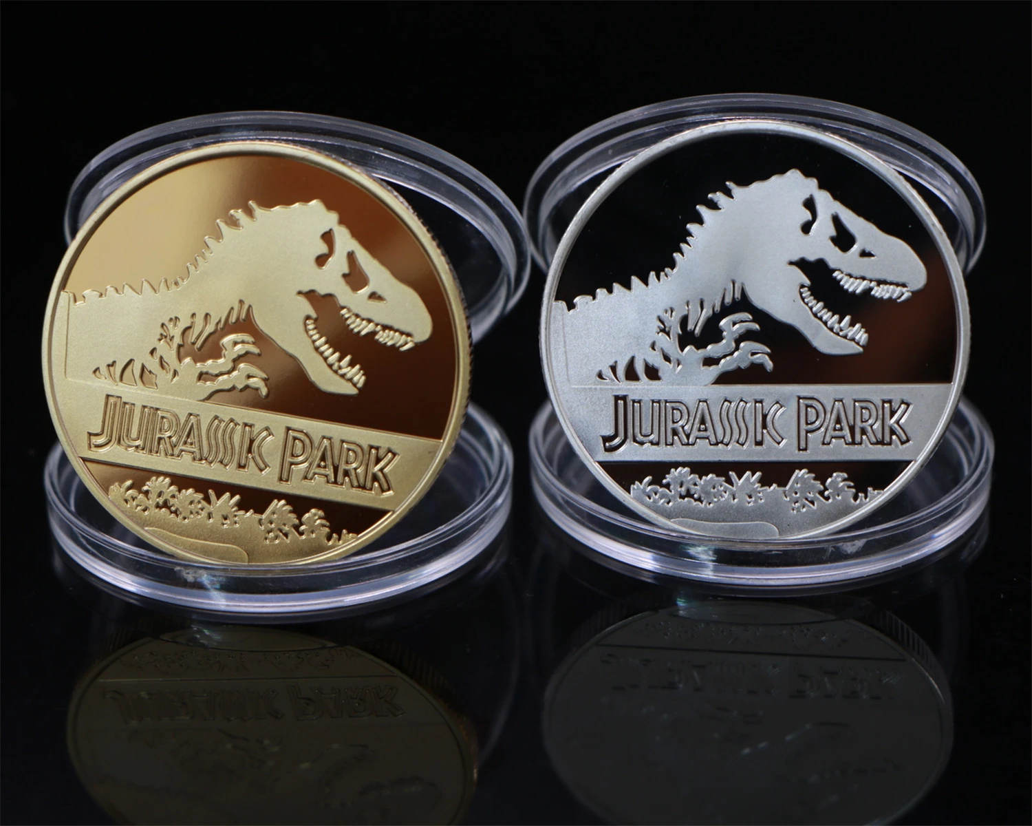 2pcs Lot Gold Silver Plated Coins Jurassic Park Dinosaur Commemorative Coin Collection Birthday Christmas Business Gifts Non Currency Coins Aliexpress